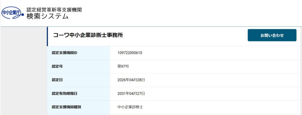 このたび当事務所は、2026年4月28日付で経済産業省認定「認定経営革新等支援機関」として認定されました。